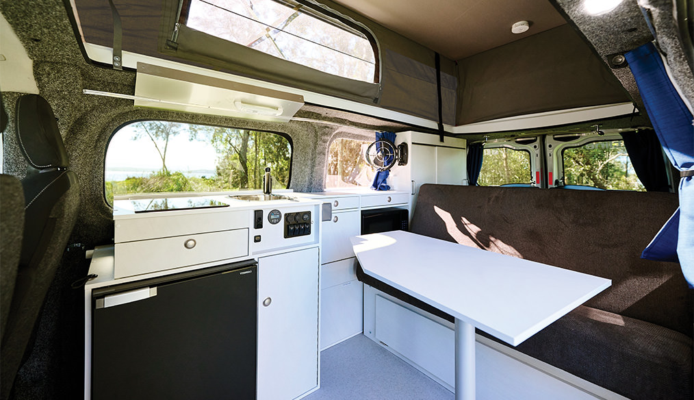 Hot water is also an option and opening flyscreen windows ensure you can always enjoy cooler fresh air in the evenings. Removable zippered flyscreen panels can be fitted as an option near the LH sliding door and rear tailgate for additional ventilation.