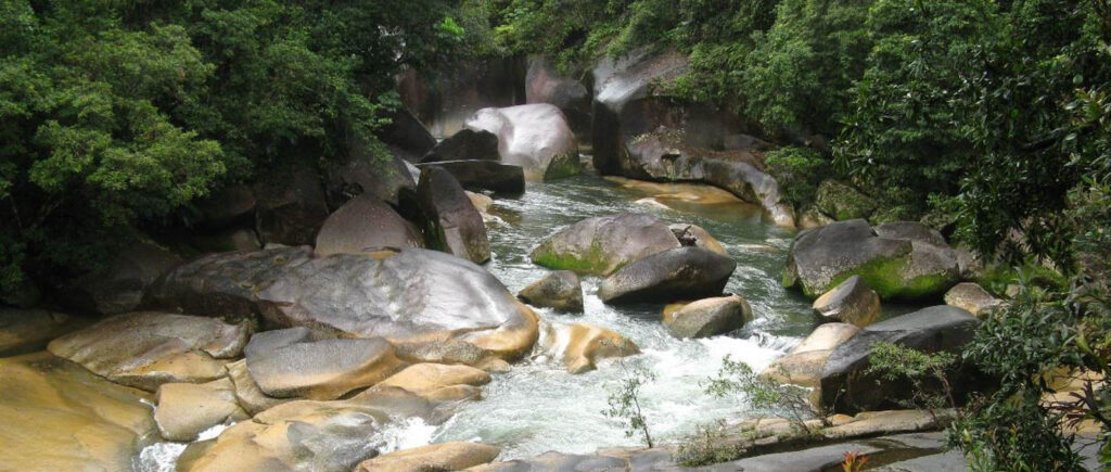 But the camping area was a proper quagmire. I pitied the people staying in tents. In successive nights we camped at El Arish, Babinda Boulders, Tully Gorge and Paronella Park. It rained at the Boulders but was dry at the other sites. In fact day 77 at Babinda Boulders was the last time we experienced any rain. Incidentally we camped there in the rain last time we visited in 2014. It is a popular swimming spot despite over 20 people dying there since the 70s. There are signs describing in graphic detail how you will