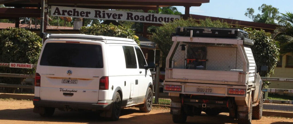 The final leg of our Cape York adventure was from Bramwell Station to Loyalty Beach. Its indicative of how bad the Telegraph Track Bypass Road is, and how out of its depth the Vanbo is, that it took us 7 hours driving time to do the final 210kms, that’s 30kph if you’re slow at arithmetic. Included in that we did the detour to Fruit Bat Falls, which is a “must do” up this way. We also had to cross the Jardine River. For all its notoriety, the Jardine is not much of a river. There is a punt operating to get you across. But if they linked two punts together it would make a permanent bridge. But that doesn’t seem to be a priority. Maybe once they complete the magnificent new bridge over the Archer River. Just a side note on the condition of the three major roads up the middle of Cape York, the Peninsula Development Road from Laura to Weipa, the Telegragh Track Bypass Road from the Weipa turnoff to the Jardine River and the Bamaga Road from the Jardine River to Bamaga. Bamaga is just down the road from where we are camping and about 35 kms from the northern most tip of the Australian mainland. When Slava and I drove the original Vanborghini up here in 2014, the roads from Cairns to the Tip were about 60% dirt. It’s almost exactly 1000kms from Cairns to Bamaga, so that was 600kms of dirt. We measured it on the way up and the dirt bits now account for only about 35%, or 350 kms and the biggest chunk of that is north of the Weipa turnoff. So in the last decade, about 250kms of new sealed road has been built. But apart from the new Archer River Bridge, there is no work currently being undertaken to improve the road. So it could be decades before the road is all sealed. Even if/when it is sealed it will remain a frontier because it is so remote and that won’t change. But in the dry season, it is idyllic when you get here.