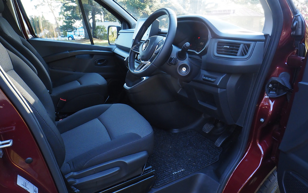 When I picked up the Carmin Red (a very striking colour) Trafic, Frontline’s Gordon Galloway was enthusiastic about driving it, and I soon discovered why. It has frontwheel drive, is powered by a 2.0 litre turbo diesel engine and has a six-speed dual-clutch automatic transmission.