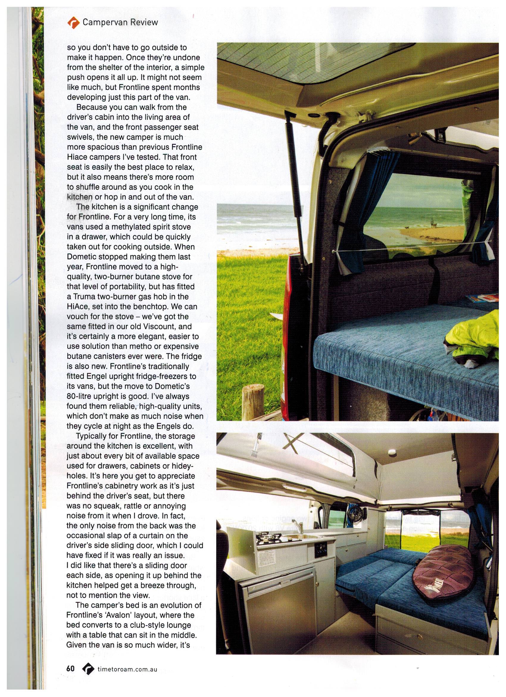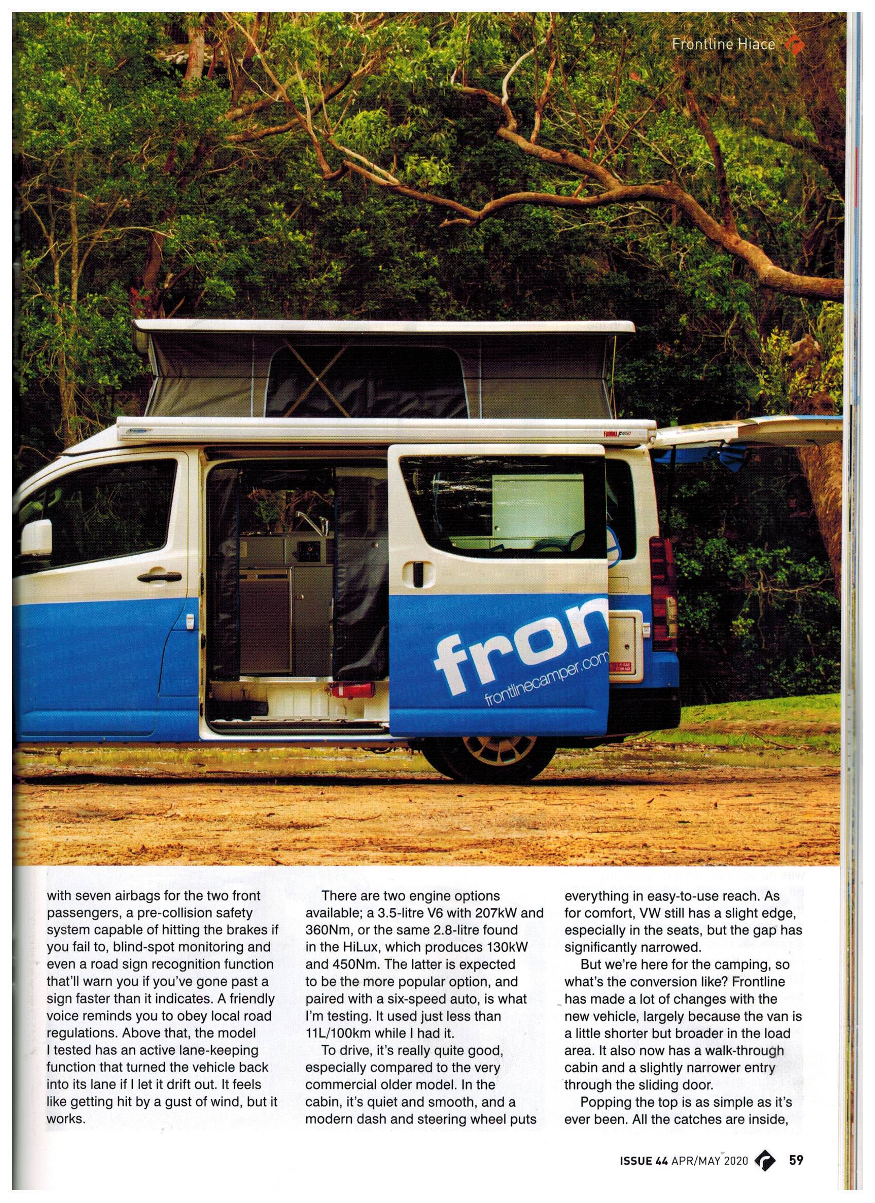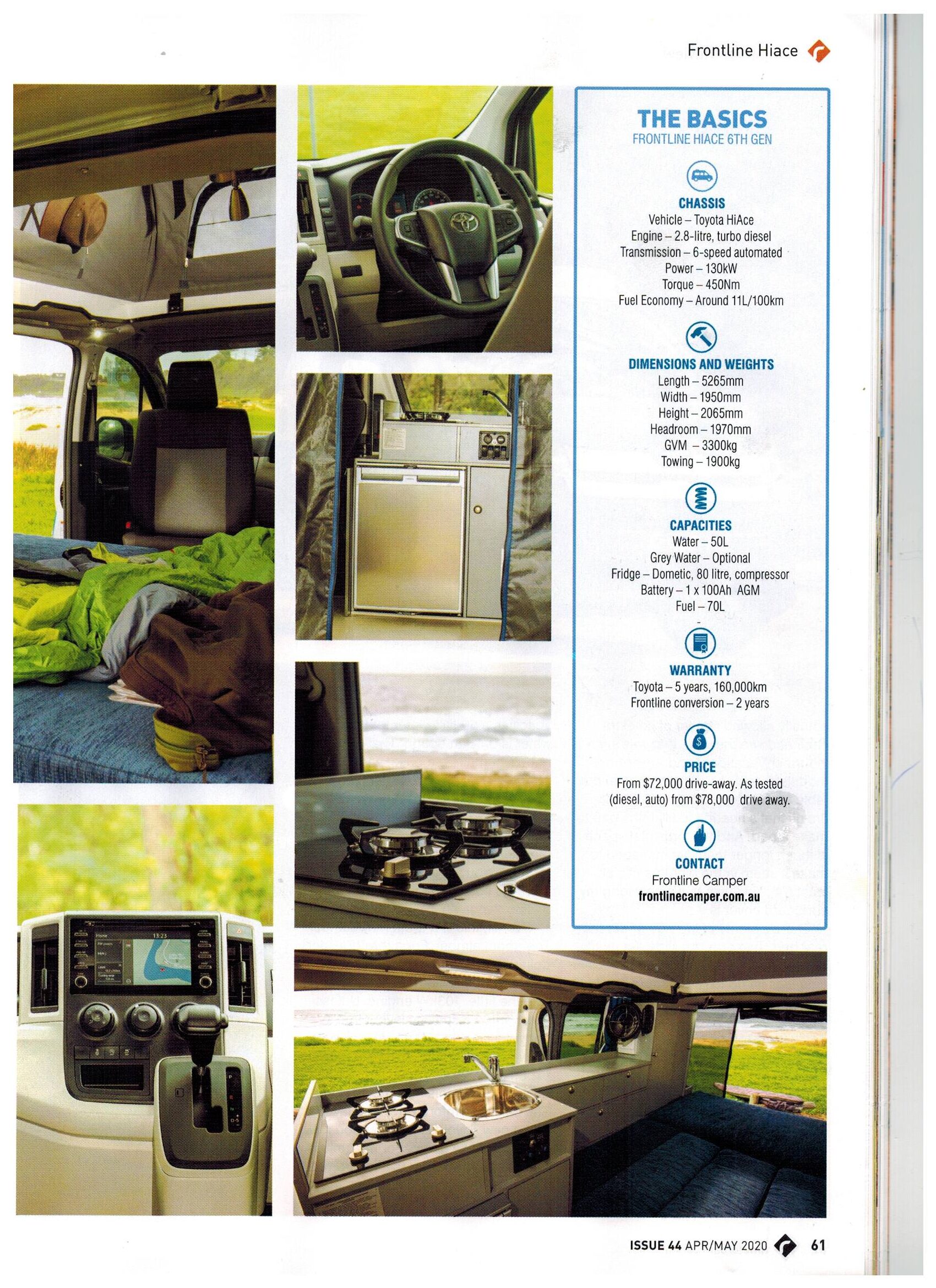 Sydney-based Frontline campers were among the first to convert the latest HiAce and remain one of the few Australian specialists offering full ‘turn key’ production versions of this top-selling Japanese van. For nearly 35 years, Frontline campervans have been built with expert craftsmanship at the company’s Brookvale factory in northern Sydney.