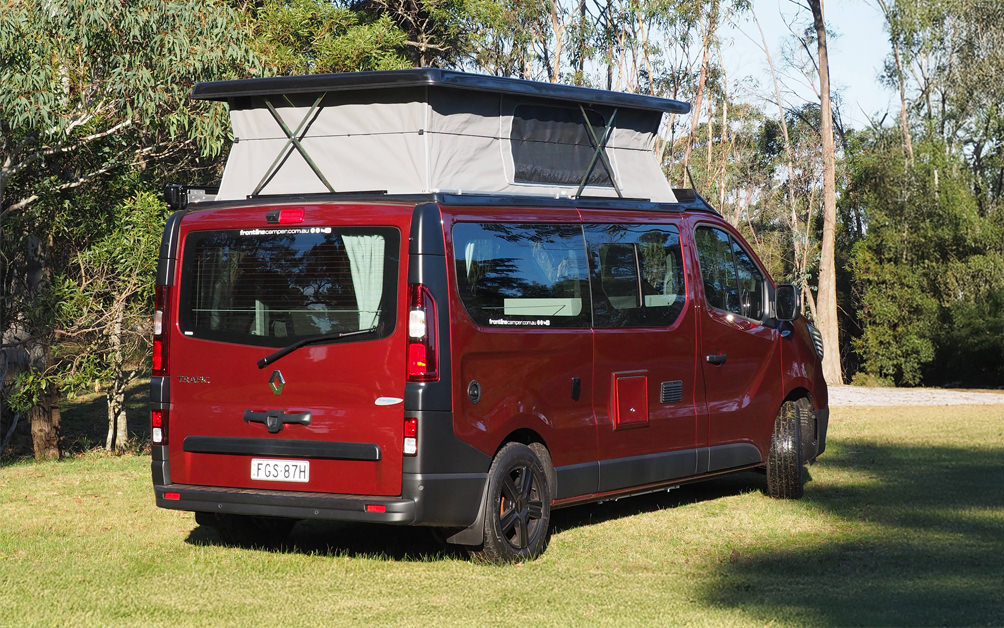 latest is built very much in the accustomed style. Undoubtedly, the Renault Trafic adds a new dimension and is a fun vehicle to drive. Designed for lightweight travel, the Trafic camper is highly manoeuvrable. It travels well on the road and fits easily into supermarket parking. Being a campervan, some set-up is required – but it can be done in less than 15 minutes. Ideal as a weekender and for longer-term travel. Très bien!