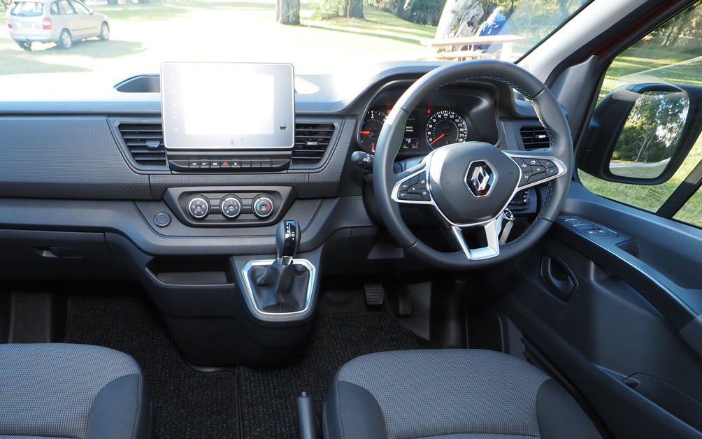 When I picked up the Carmin Red (a very striking colour) Trafic, Frontline’s Gordon Galloway was enthusiastic about driving it, and I soon discovered why. It has frontwheel drive, is powered by a 2.0 litre turbo diesel engine and has a six-speed dual-clutch automatic transmission.