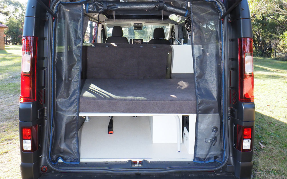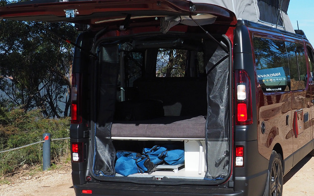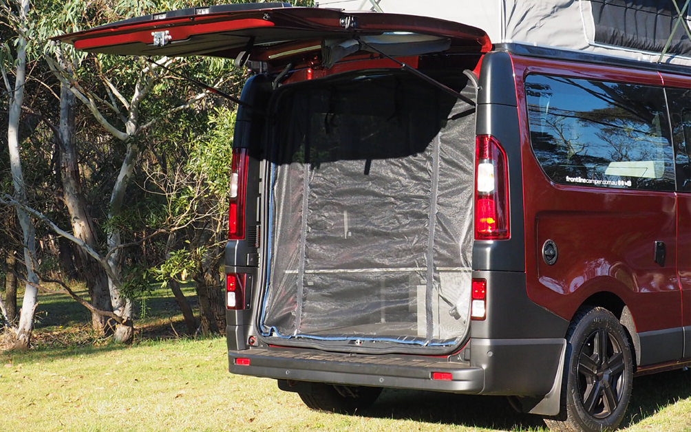 The pop-top offers generous headroom, with great natural ventilation from flyscreened windows. Optional removable flyscreens for the tailgate and sliding door help with insect protection during warmer nights.